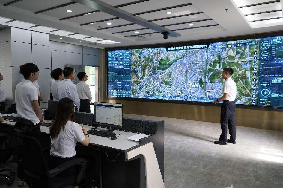 陳勉彬一行首先到惠陽(yáng)水務(wù)供水調(diào)度中心,詳細(xì)了解管網(wǎng)GIS系統(tǒng)、SGADA、智慧消火栓及二次供水泵房監(jiān)控系統(tǒng)等智慧水務(wù)建設(shè)工作,聽(tīng)取公司供水產(chǎn)能、供水范圍、網(wǎng)格化管理、重點(diǎn)企業(yè)用水保障及供水設(shè)施工程建設(shè)等情況。隨后召開(kāi)座談會(huì),會(huì)上,惠陽(yáng)水務(wù)公司黨委書(shū)記、董事長(zhǎng)李火根匯報(bào)了公司生產(chǎn)經(jīng)營(yíng)情況及2024年工作思路等。