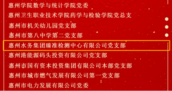 為表彰先進(jìn)、弘揚(yáng)正氣,激勵(lì)全市各級(jí)黨組織和廣大黨員再接再厲、擔(dān)當(dāng)作為,加快打造廣東高質(zhì)量發(fā)展新增長(zhǎng)極,市委決定,授予96名同志“惠州市優(yōu)秀共產(chǎn)黨員”稱號(hào),授予91名同志“惠州市優(yōu)秀黨務(wù)工作者”稱號(hào),授予122個(gè)黨組織“惠州市先進(jìn)基層黨組織”稱號(hào)。其中市水務(wù)集團(tuán)黃海燕獲“惠州市優(yōu)秀黨務(wù)工作者”稱號(hào),臻準(zhǔn)檢測(cè)中心黨支部獲“惠州市先進(jìn)基層黨組織”稱號(hào)。