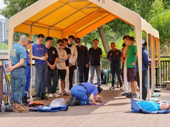 藍(lán)天救援隊(duì)結(jié)合近期發(fā)生的溺水和救援案例,現(xiàn)場(chǎng)拆解“黃金四分鐘”,他們帶領(lǐng)景區(qū)和經(jīng)營(yíng)業(yè)態(tài)工作人員分組練習(xí),從清理呼吸道、開放氣道到精準(zhǔn)按壓,逐一糾正手勢(shì)偏差。全域覆蓋從“專業(yè)隊(duì)”到“全員兵”的安全共識(shí)。接著,槳板運(yùn)動(dòng)協(xié)會(huì)與藍(lán)天救援隊(duì)分別對(duì)槳板救援、繩包救援、徒手救援等進(jìn)行了系統(tǒng)化的培訓(xùn),景區(qū)內(nèi)各業(yè)態(tài)的工作人員也積極地參與了救援實(shí)踐的學(xué)習(xí)。