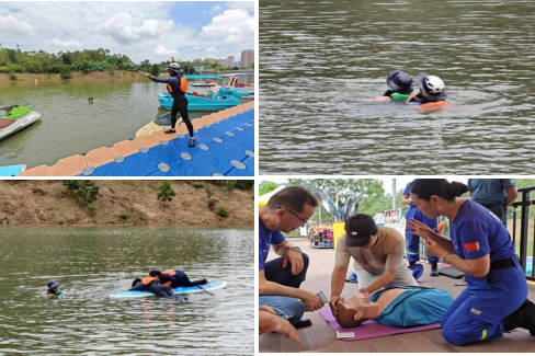 8月22日上午9時(shí),桃花源游客服務(wù)中心聯(lián)合惠州市藍(lán)天救援隊(duì)、惠州市槳板運(yùn)動(dòng)協(xié)會(huì)在桃花源水上運(yùn)動(dòng)中心開展“防溺水專項(xiàng)應(yīng)急演練”。此次演練統(tǒng)籌組織了景區(qū)保安、水上項(xiàng)目全體員工、經(jīng)營(yíng)業(yè)態(tài)負(fù)責(zé)人等30余人,圍繞“發(fā)現(xiàn)—呼救—救援—醫(yī)療”全鏈條開展實(shí)戰(zhàn)化水上安全救援演練。