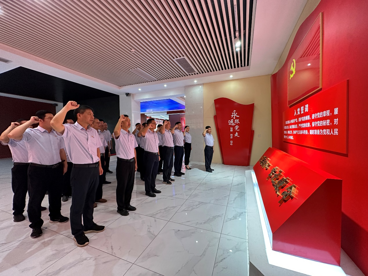 參觀活動結(jié)束后,黨委書記、董事長鄭海強(qiáng)同志帶領(lǐng)黨員干部重溫入黨誓詞,大家面向黨旗、高舉右拳,以洪亮的聲音喚起入黨初心,銘記責(zé)任擔(dān)當(dāng)。此次參觀學(xué)習(xí)活動,讓大家對正風(fēng)、肅紀(jì)、促發(fā)展有了更深入的理解和認(rèn)識,紛紛表示要以廉政文化教育基地為教材,以時代楷模為榜樣,以反面教材為警鐘,自覺做到克己奉公、廉潔自律,永葆共產(chǎn)黨人清正廉潔的政治本色。